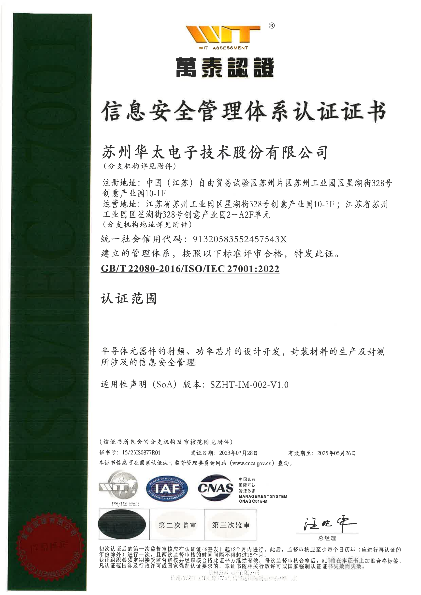 為提高企業(yè)效益,全面保證產(chǎn)品質量,為客戶提供滿意的一流產(chǎn)品,華太電子重視質量體系建設,先后通過ISO9001質量管理體系、ISO14001環(huán)境管理體系、ISO45001職業(yè)健康管理體系、ISO27001信息安全管理體系認證等。 同時,注重保護環(huán)境和員工職業(yè)健康,承擔社會責任,促進企業(yè)可持續(xù)發(fā)展。